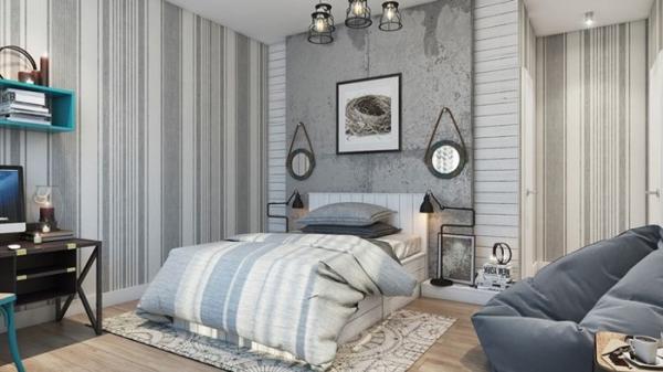Sử dụng gạch bằng bê tông là gợi ý hay nếu gia chủ muốn có phòng ngủ theo phong cách Scandinavian.