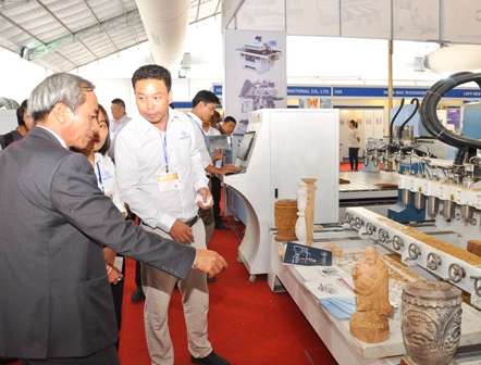 Doanh nghiệp gỗ Việt Nam tham quan tìm hiểu công nghệ chế tác gỗ tại VietnamWood lần thứ 11. Ảnh: Hà